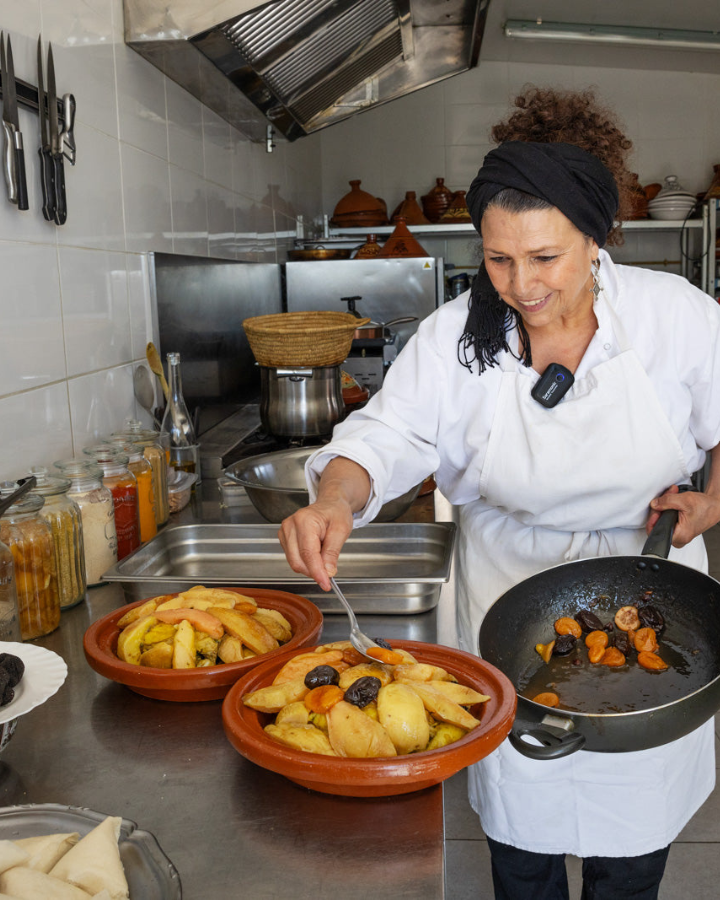 Chaque tajine raconte une histoire, celle d’une tradition transmise avec passion et dévouement. Dans la chaleur de sa cuisine, Fatiha sélectionne avec soin chaque ingrédient, provenant de son jardin, pour offrir des saveurs authentiques et mémorables. Derrière chaque plat se cache un sourire, un geste attentionné, et l’envie de partager avec vous le meilleur de la cuisine marocaine. Offrez-vous une expérience où le goût et l’émotion se rencontrent.